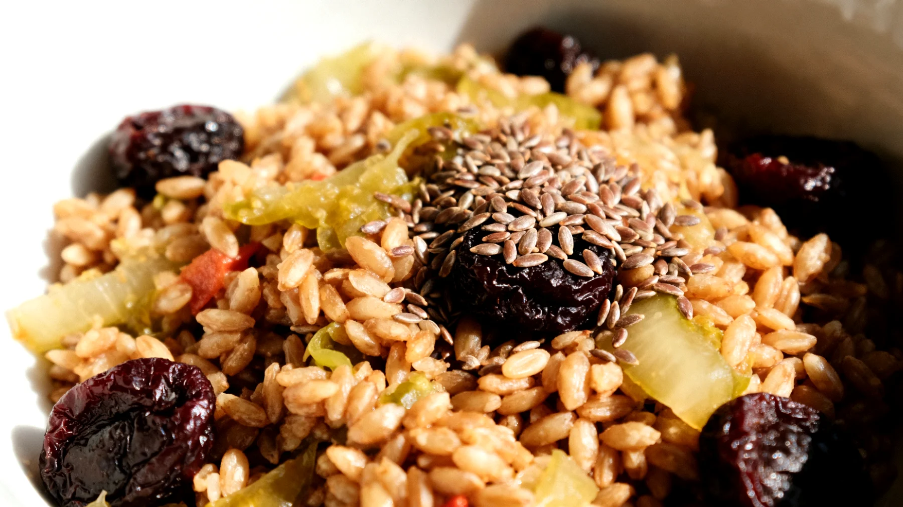 Il lavoro a turni mette a dura prova l’equilibrio digestivo di migliaia di persone ogni giorno. Pasti consumati a orari sempre diversi, spuntini improvvisati durante le pause notturne e quella sensazione di pesantezza che accompagna le ore in cui il corpo dovrebbe riposare sono sfide quotidiane per chi vive ritmi irregolari. Gli studi sui lavoratori a turni mostrano che questi ritmi sono associati a maggior rischio di disturbi gastrointestinali e alterazione della regolarità intestinale. L’insalata di farro con prugne secche, semi di lino e verdure fermentate rappresenta una risposta concreta a queste sfide, unendo praticità e densità nutritiva in un unico piatto che favorisce il benessere intestinale attraverso un apporto combinato di fibre, prebiotici e composti bioattivi.